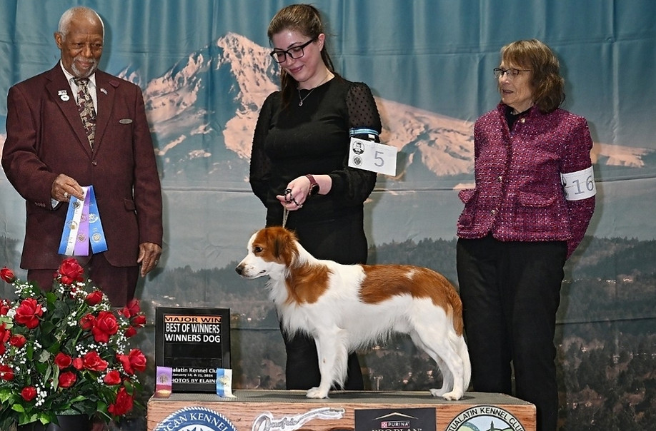 Odin is the face of Ragnarok Kooikers. He truly cemented my love for the breed and inspired me to become a breeder. He is a very unique kooiker in so many ways. Ever since he was a puppy, he's always been the most confident and isn't afraid of a new challenge. His favorite thing to learn are tricks and in 2023 he won the top kooikerhondje in tricks at the NKCUSA national specialty. Odin is my everything dog and was the first in his breed to compete and title in UKC weightpull. It really speaks volumes on how versatile he really is. Odin is the sweetest dog and has maintained the same temperament since he was a puppy. He's sweet and loves meeting new dogs and people. I can't imagine life without Odin in it.